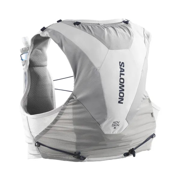 Fine-tuned for endurance events, the Salomon Adv Skin 5 Set hydration vest ensures easy access to hydration, with a 5-liter capacity that's ideal for marathon trail races and adventures up to 60 km.