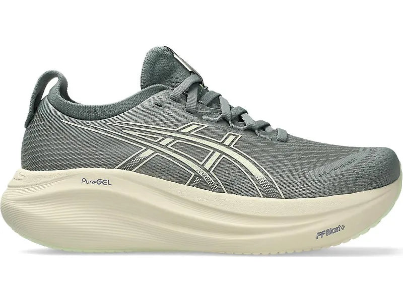 The GEL-NIMBUS® 27 shoe's soft cushioning properties help you feel like you're landing on clouds. This design is revamped to help create a softer and smoother running experience.