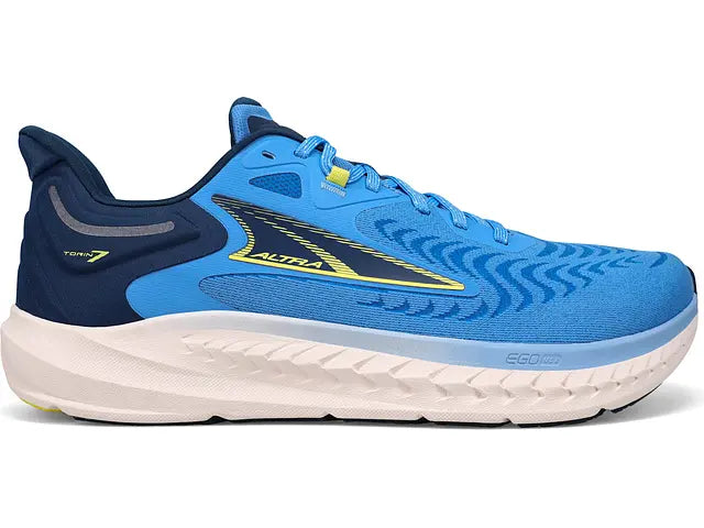 Engineered to take on every run, the Altra Torin 7 is a daily training shoe that offers runners a more natural running experience thanks to its zero heel-toe offset design and natural FootShape fit. The key to the Torin 7's versatility is Altra's EGO MAX foam found throughout the midsole. The foam offers a highly cushioned on foot experience for comfort while the responsive nature of the foam delivers a lively underfoot ride. The full-length rubber outsole provides runners with exceptional traction and durability while the FootPod design gives a naturally flexible and smooth ride. The engineered mesh forms the upper for exceptional breathability and comfort. Finished off with an Evolved molded heel collar for comfort and a secure lockdown, the Altra Torin 7 is a versatile daily trainer perfect for anyone looking for a more natural run.